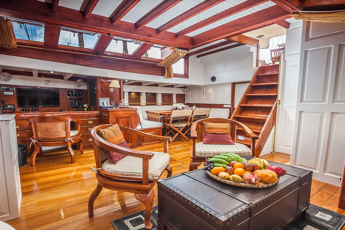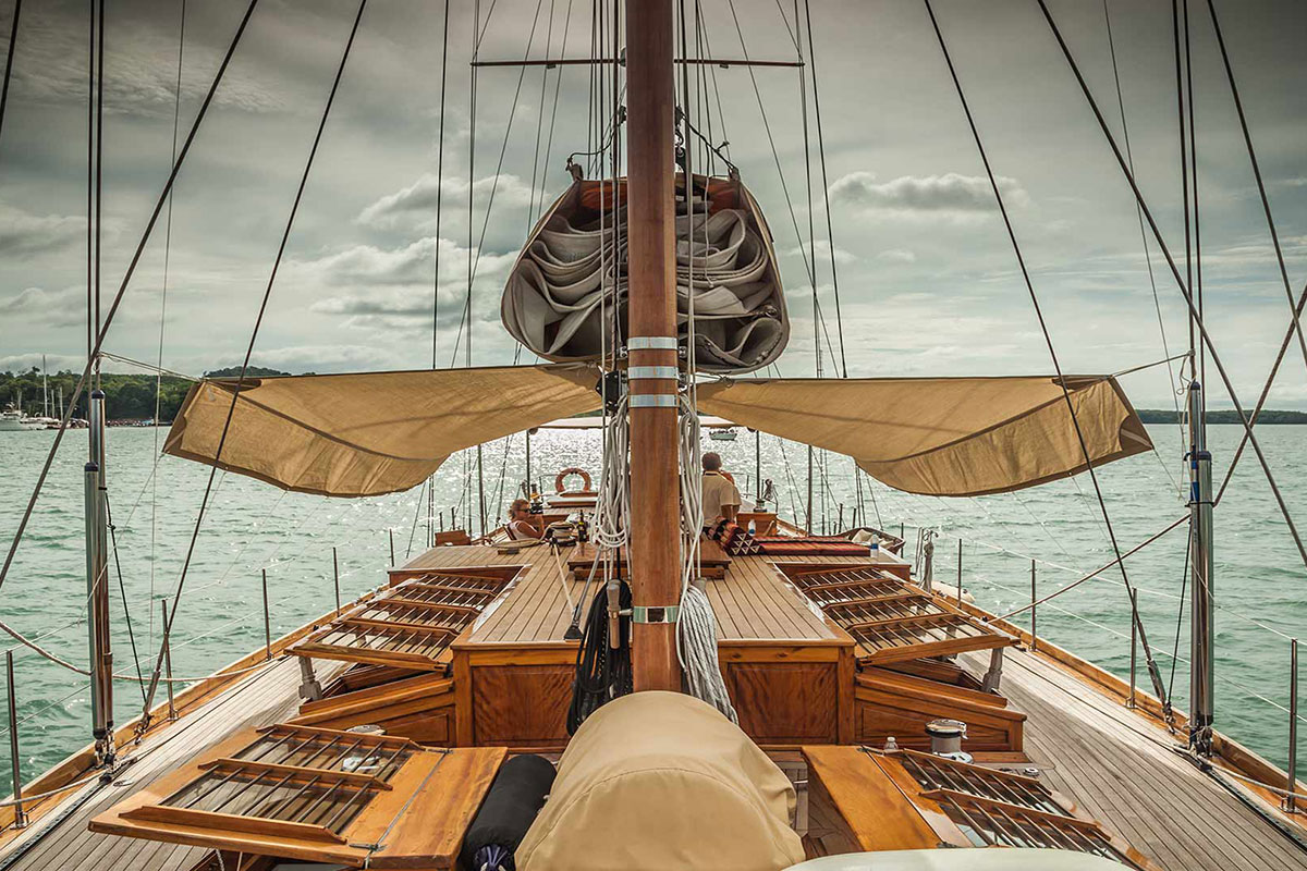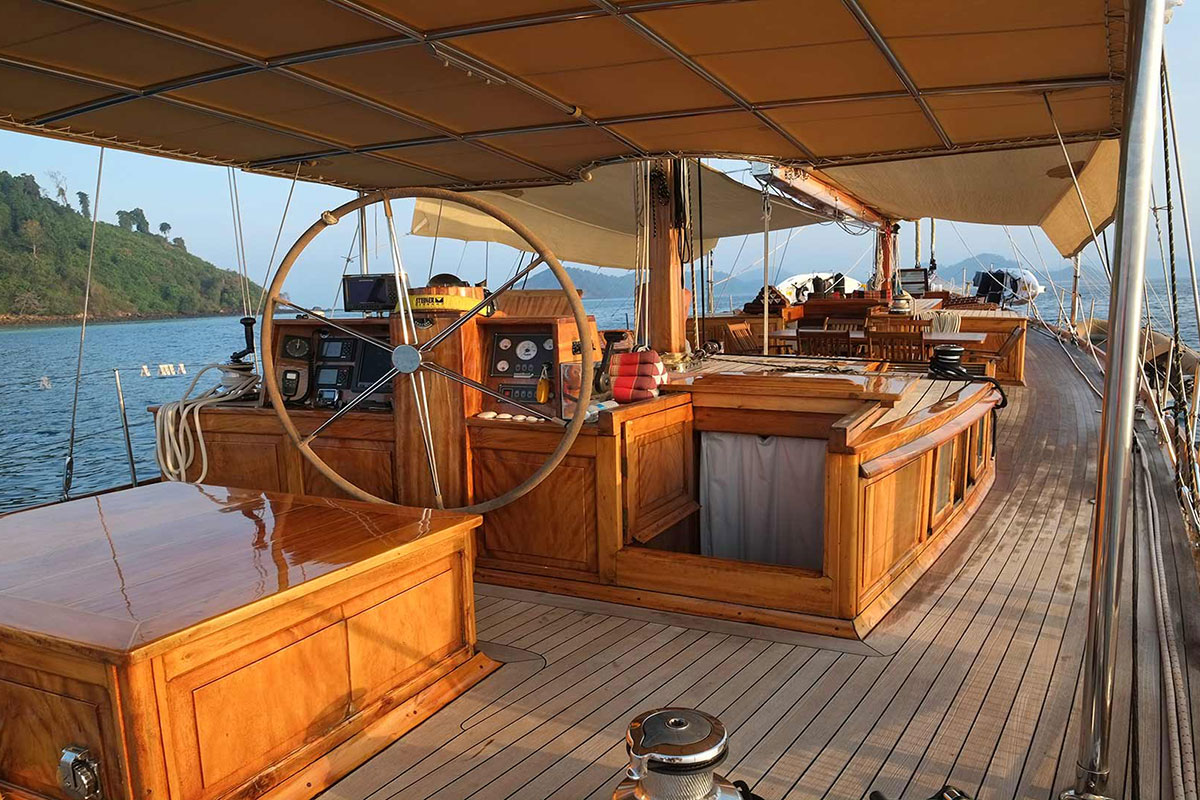 Recently renovated, Aventure now delivers improved onboard comfort while still preserving her timeless character. As a result, she stands out as an excellent choice for charters between Myanmar’s remote Mergui Archipelago and Phuket, Thailand. These cruising areas feature quiet islands, clear waters, and diverse marine life. Therefore, each voyage feels both rewarding and unhurried.
