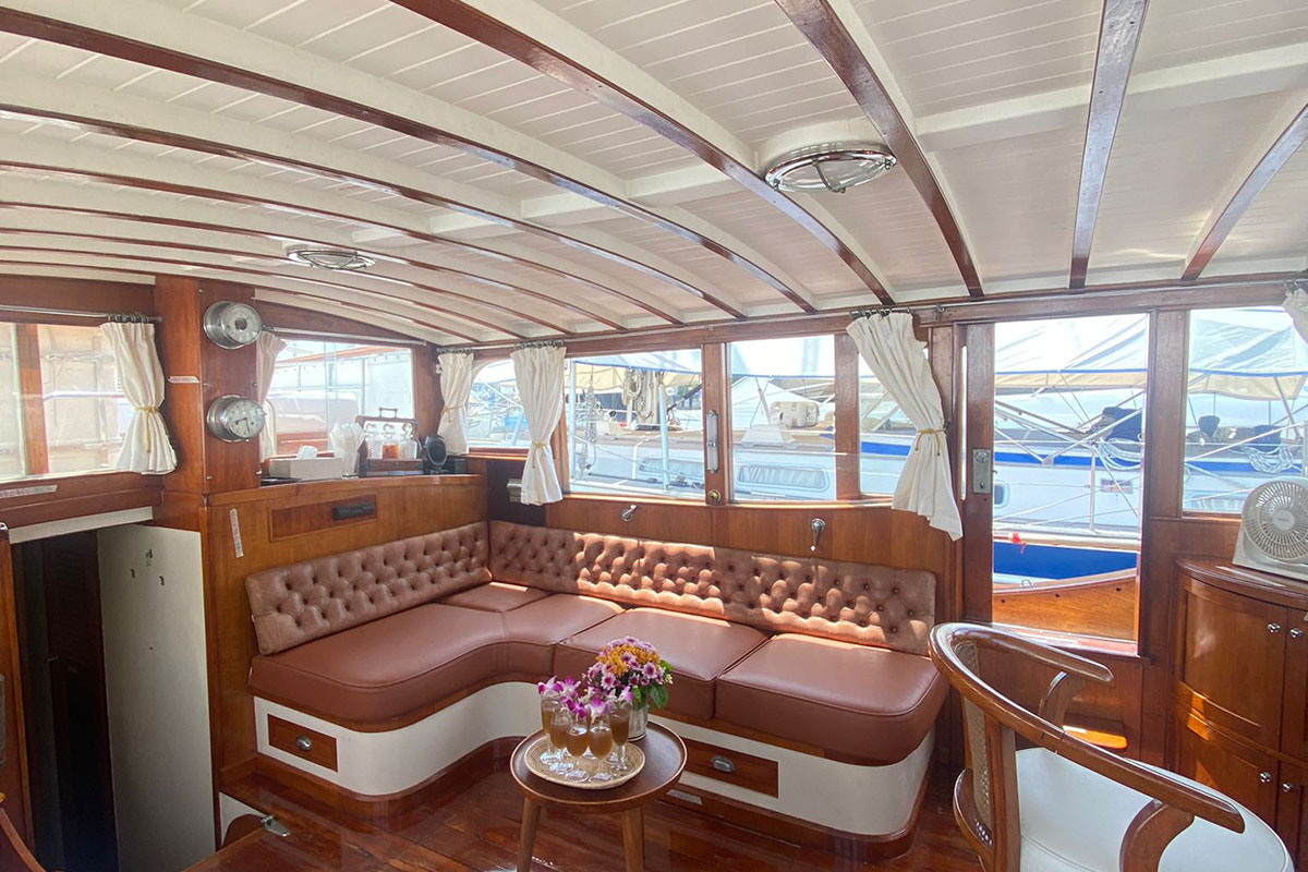 At the same time, her elegant wooden finish and balanced layout create a calm setting for cruising. As a result, it is ideal for sunset cruises, coastal exploration, and peaceful day trips around Phuket.